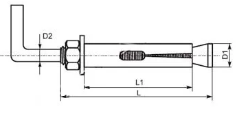 Анкер с Г образным крюком изготавливается из углеродистой стали, состоит из загнутой под 90 градусов шпильки и распорной рубашке. Анкер с костылем применяют для крепления в бетоне, кирпиче, природном камне различного подвесного оборудование.