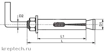 Анкер с Г образным крюком изготавливается из углеродистой стали, состоит из загнутой под 90 градусов шпильки и распорной рубашке. Анкер с костылем применяют для крепления в бетоне, кирпиче, природном камне различного подвесного оборудование.