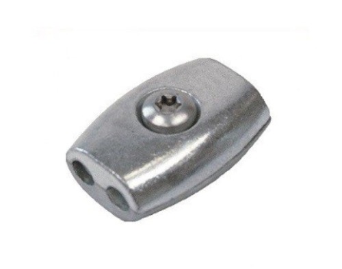 Зажим для канатов АРТ 814391 имеет овальную форму и состоит из двух половинок, которые при обвязывании каната соединяются винтом в целое изделие. Такой зажим, его в народе называют бочонок, наиболее цепко и крепко способен соединить два троса между собой.