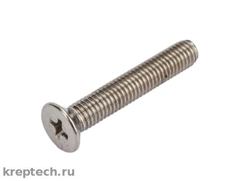 Винт с потайной головкой стандарта DIN 965 с полной резьбой и крестообразном шлицом PZ изготавливается из нержавеющей стали марки А2 (AISI 304). Нержавеющая сталь не позволяет метизу коррозировать в местах крепления собираемых конструкций и такой метиз можно использовать в условиях сырого и холодного климата, что делает винт универсальным в применении.