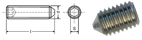 Винт стандарта DIN 914 не имеет головки, в качестве шлица используется внутренний шестигранник и выступающий вперед заостренный наконечник. Вит 914 изготавливается из стали марки Х40 и закаляется. Класс прочности 12.9.