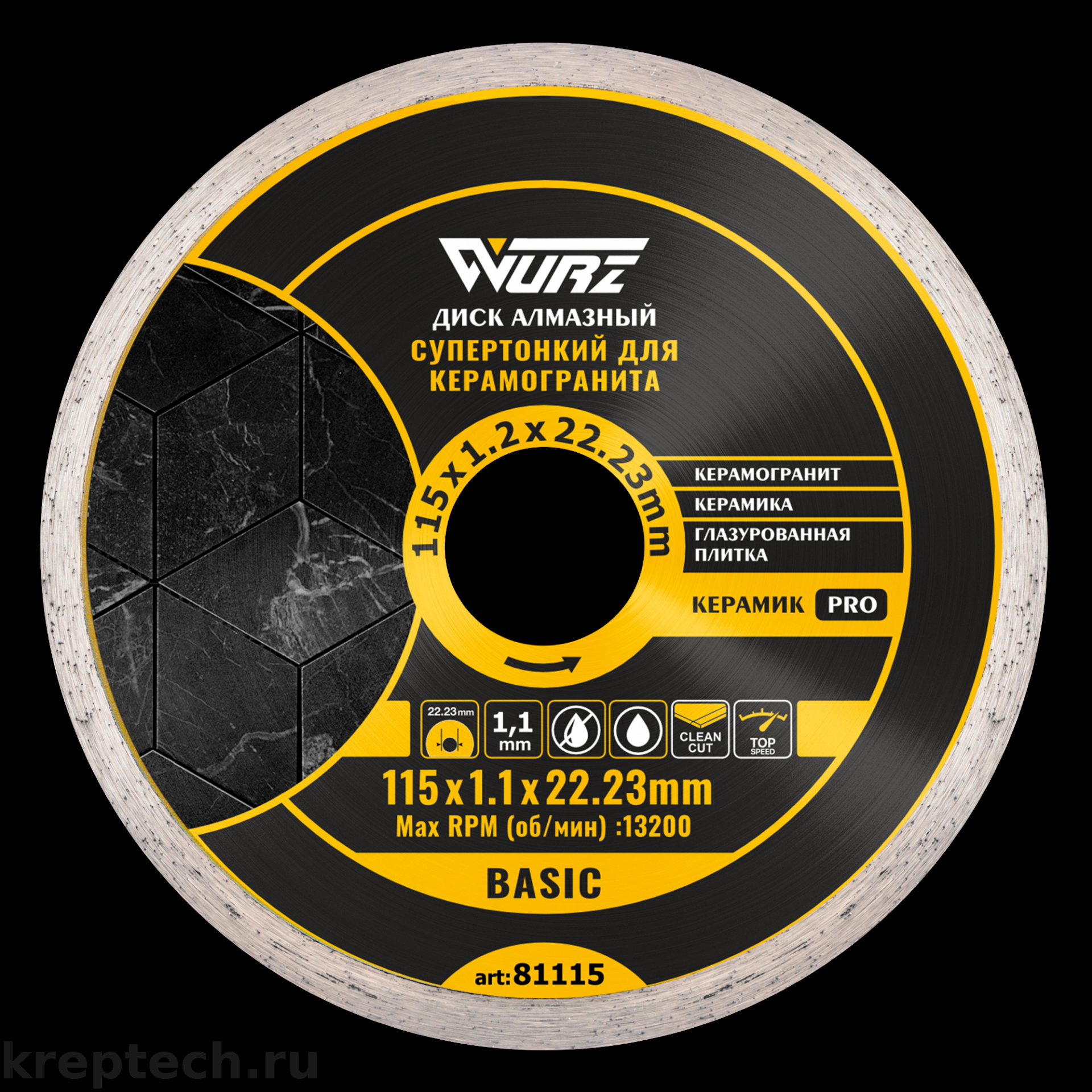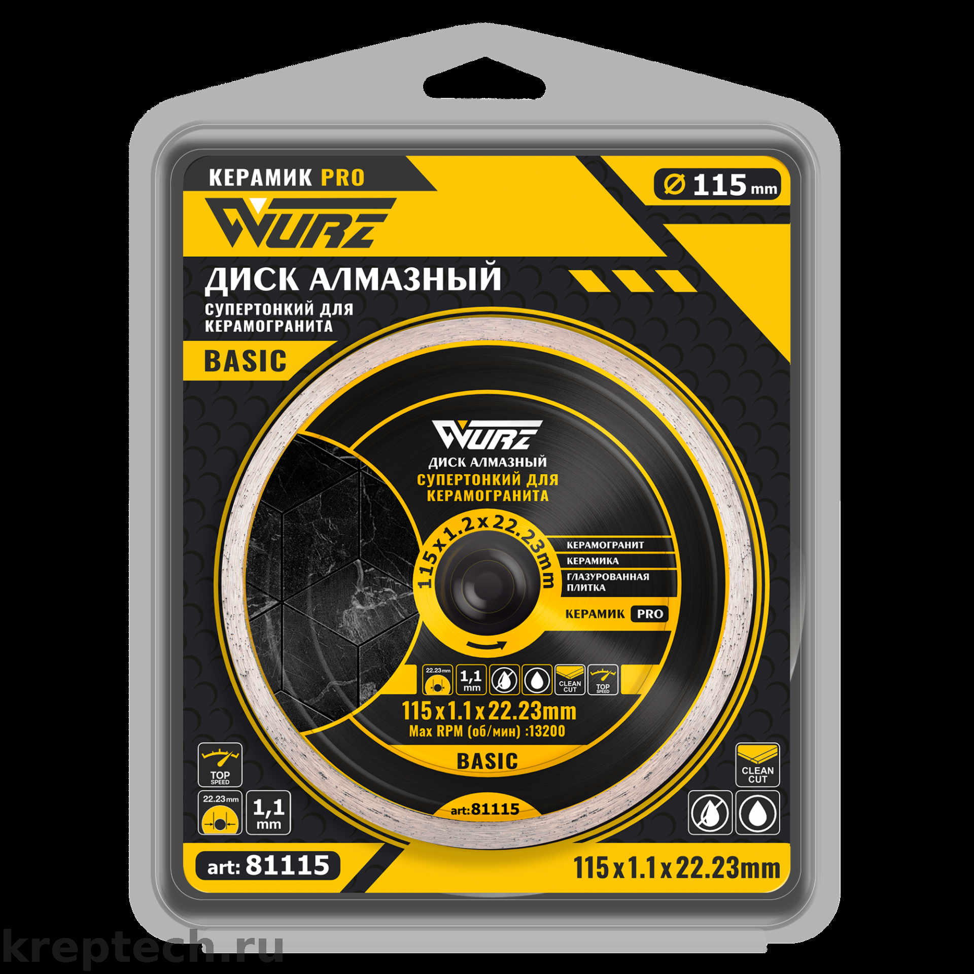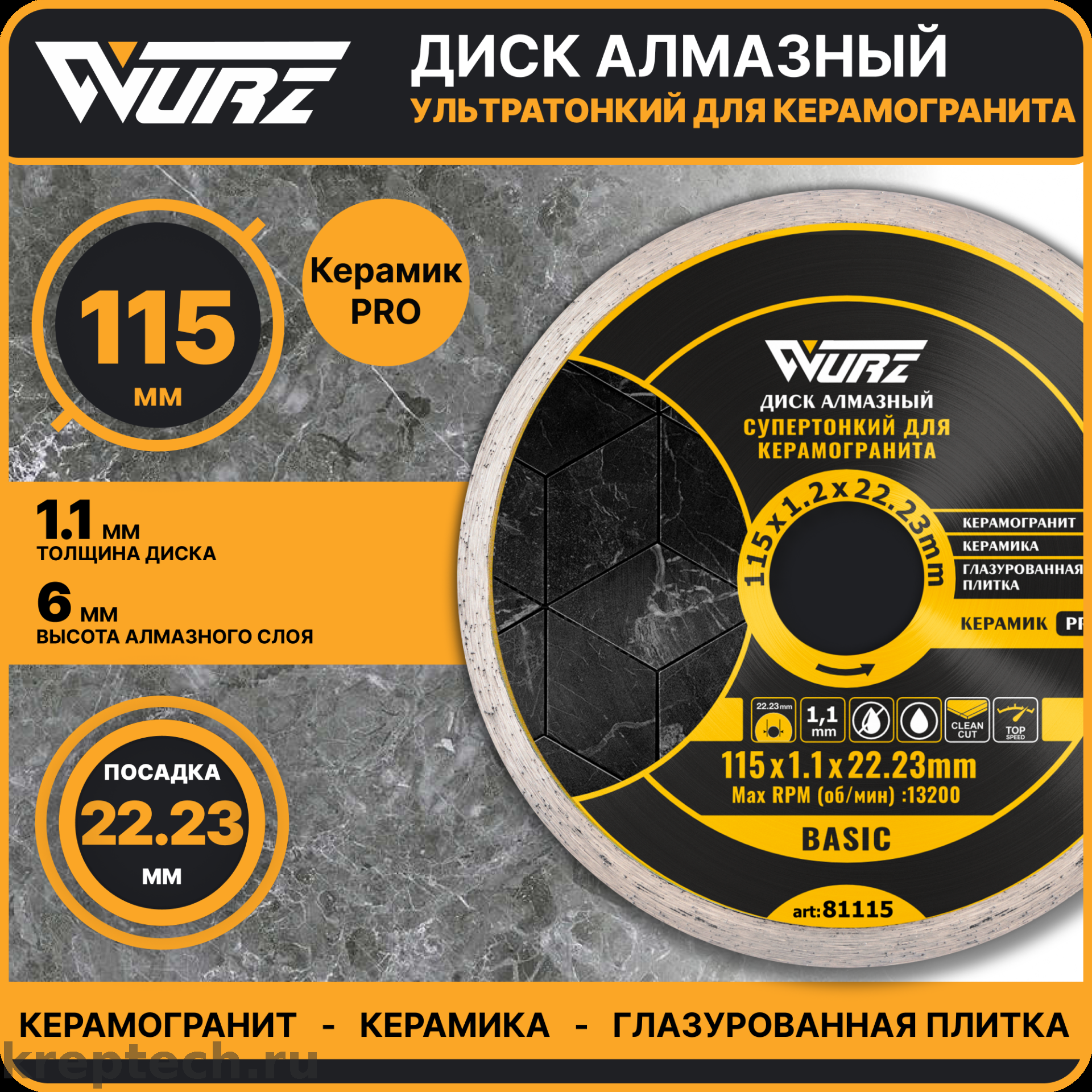 Пильный диск по керамограниту 115х1,1х22,23 mm WURZ продается на сайте поштучно.