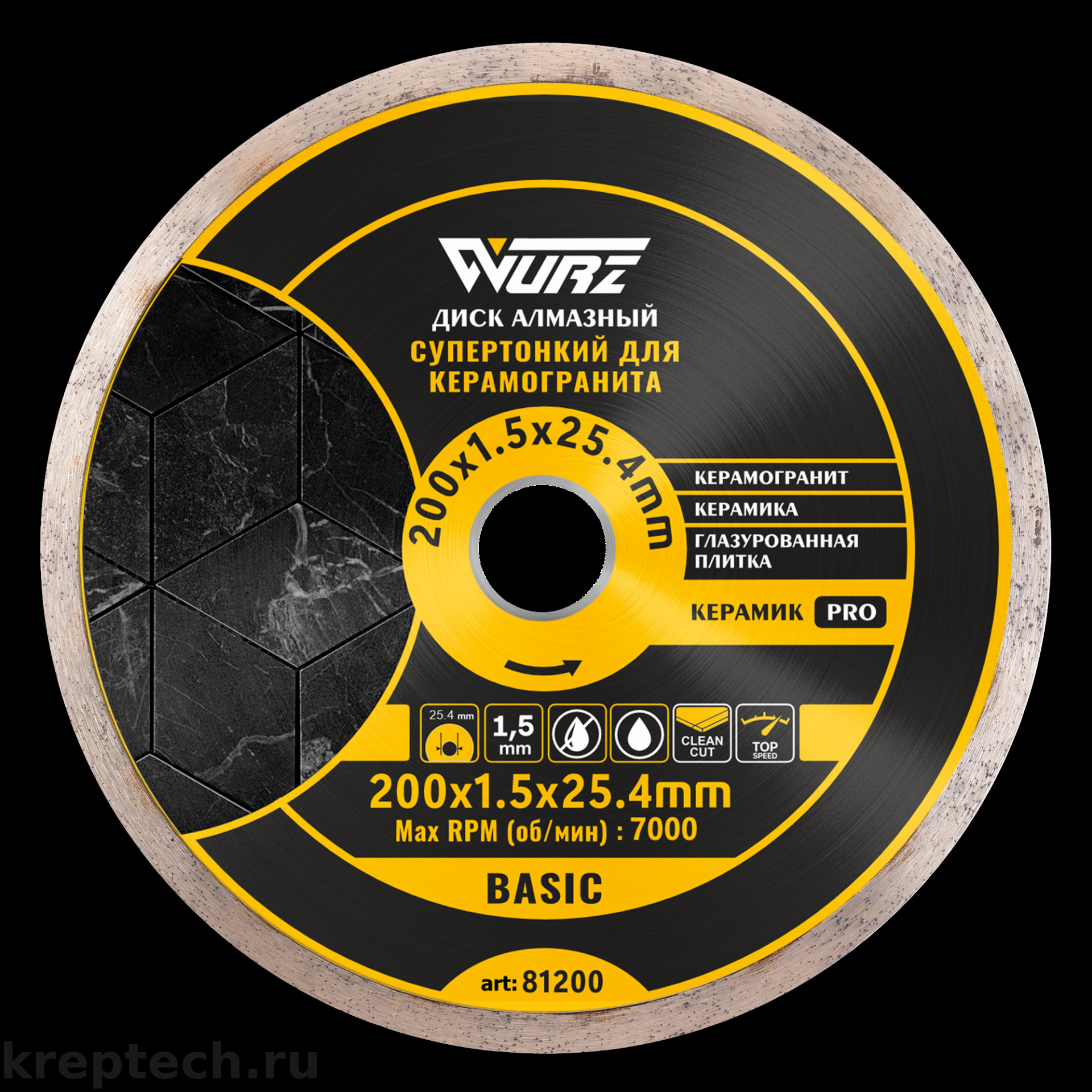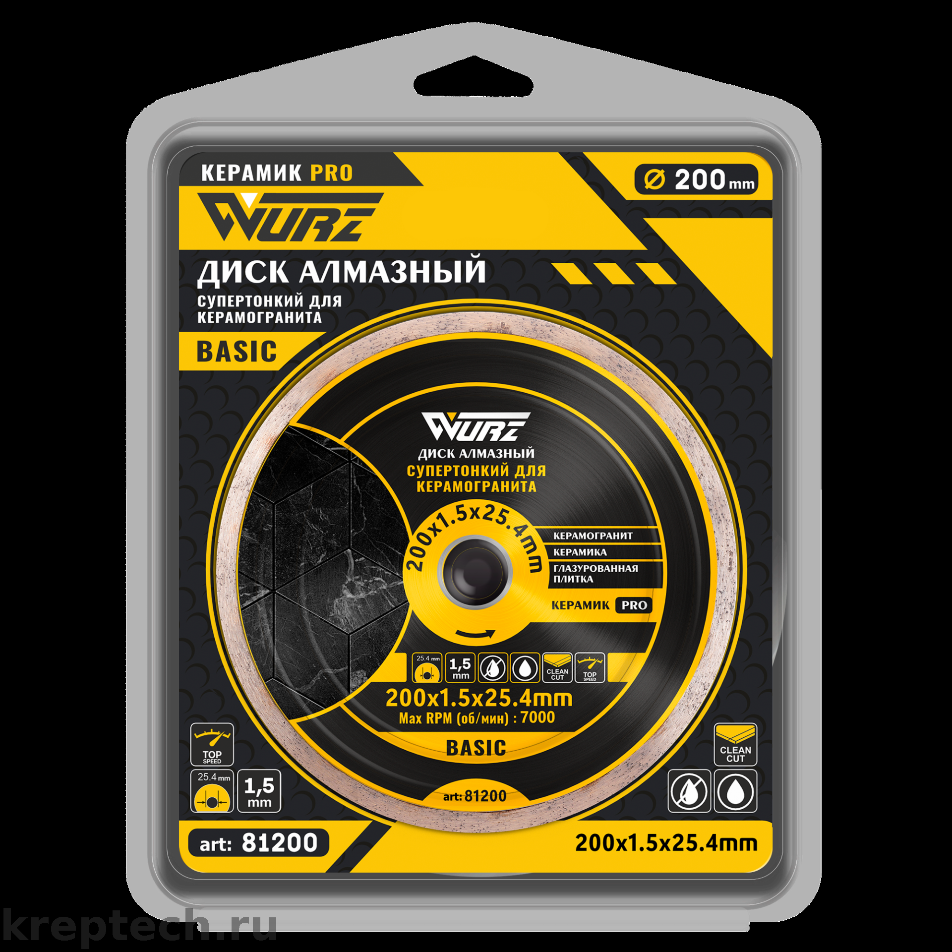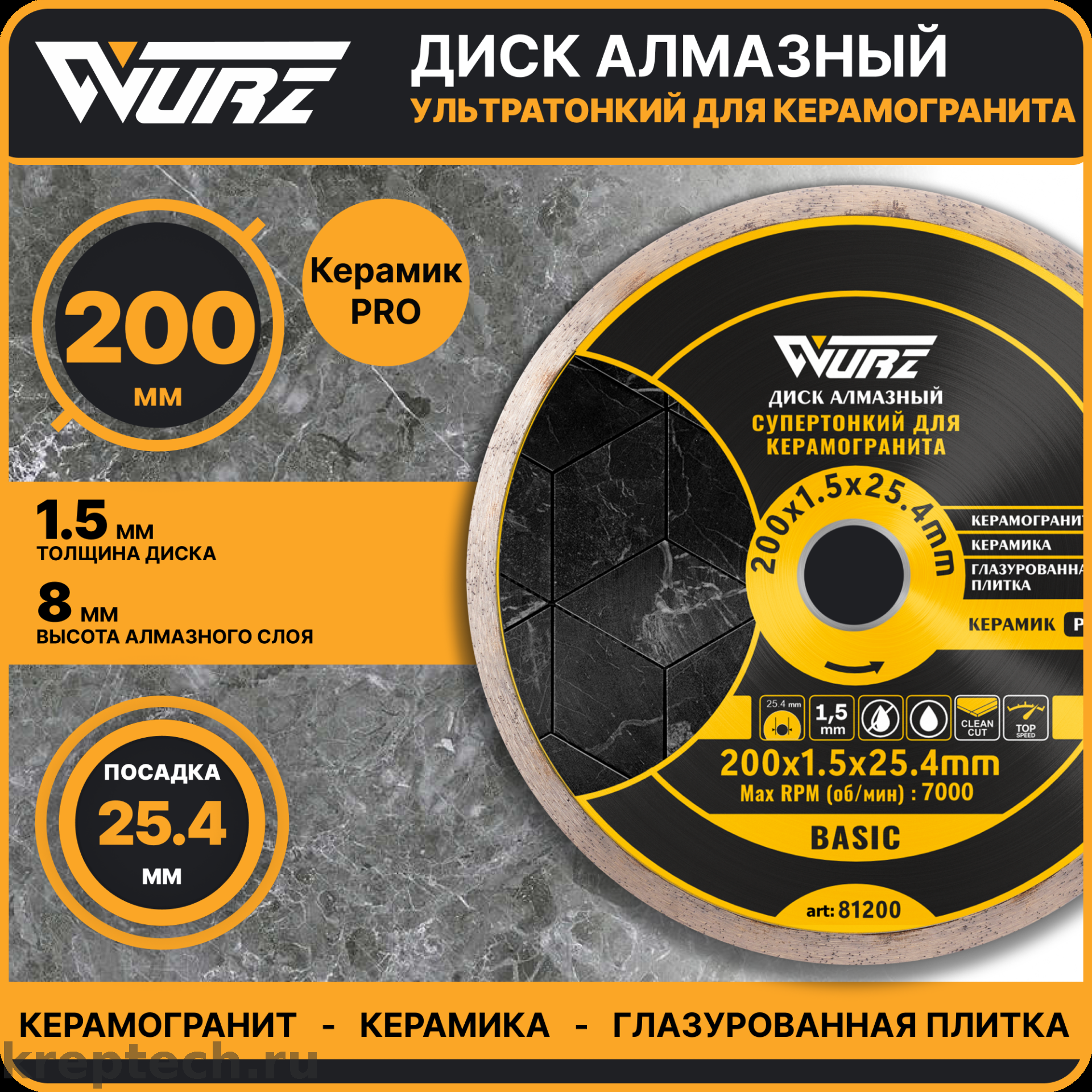 Пильный диск по керамограниту 200х1,5х25,4 mm WURZ продается на сайте поштучно.