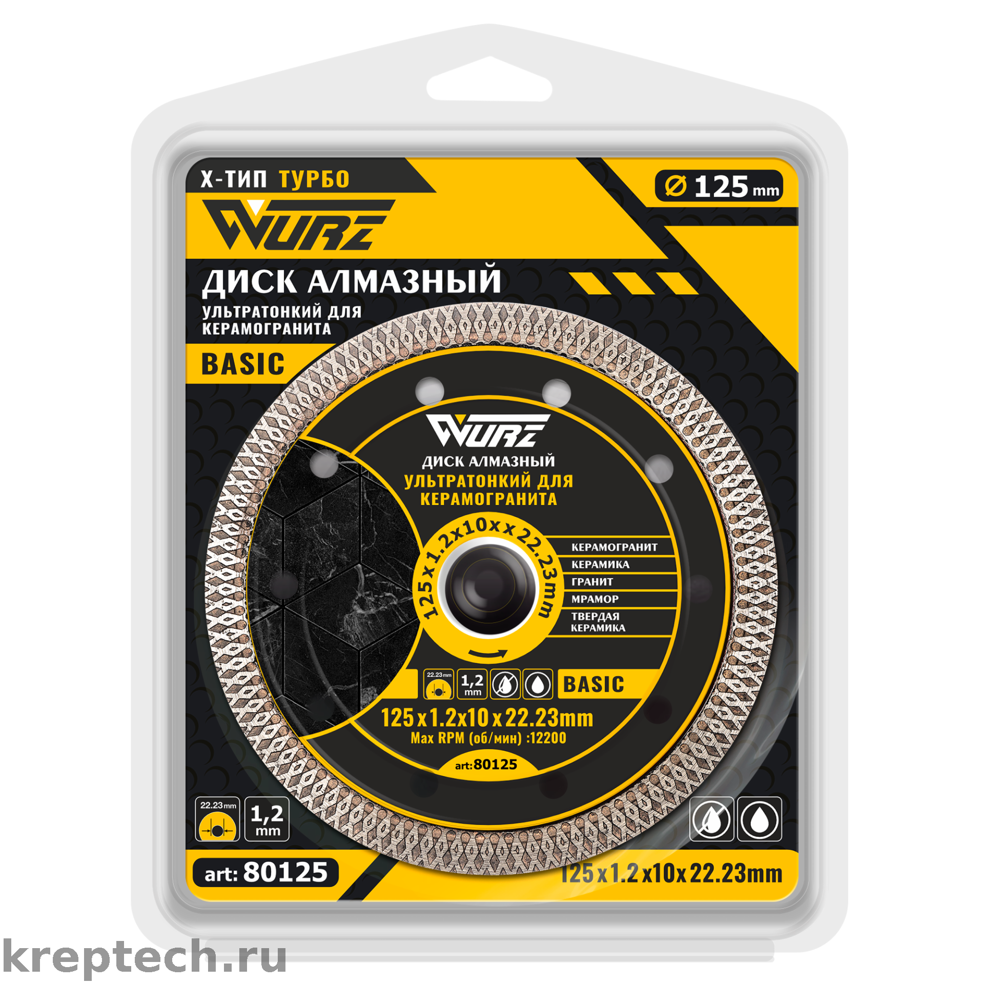 Пильный диск по керамограниту с х- образной режущей кромкой 125х1,2х22,23 mm WURZ продается на сайте поштучно.
