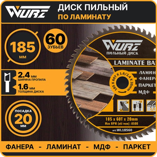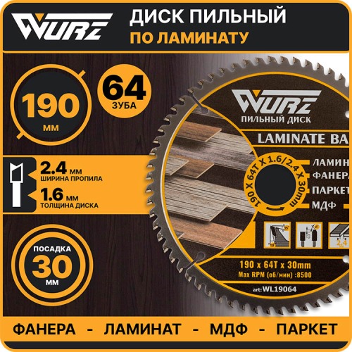 Пильные диски по ламинату, фанере, МДФ от европейского производителя WURZ. Отличаются повышенным ресурсом и превосходным соотношением цена- качество.