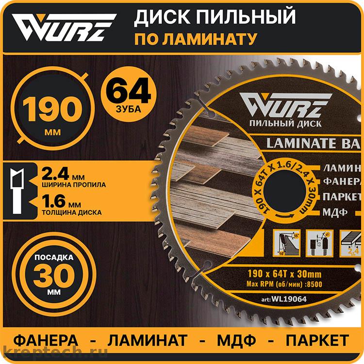 Пильный диск по ламинату 190х64Тх1,6/2,4х30 mm WURZ можно заказать на сайте и в день заказа получить со склада в городе Дедовск.