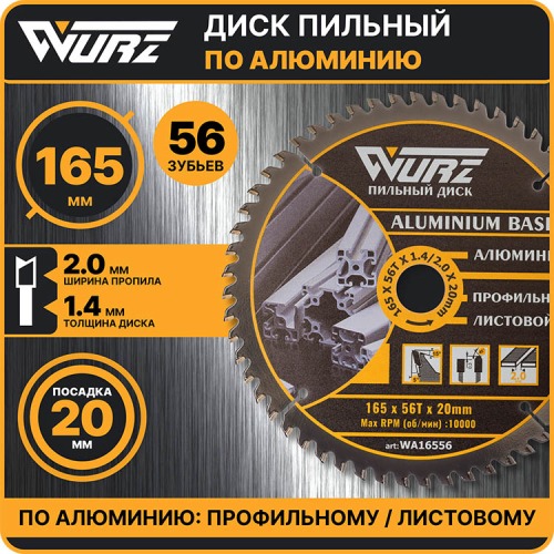 Пильный диск по алюминию 165х56Тх1,4/2,0х20 mm WURZ продается на сайте поштучно.