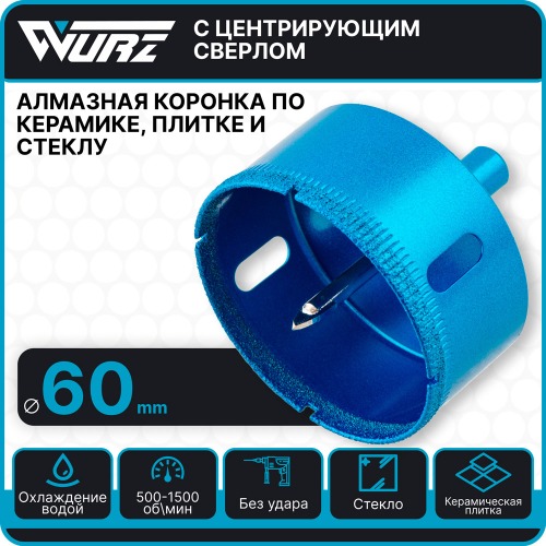 Алмазные коронки с центрирующем сверлом WURZ продаются поштучно по оптовым ценам. После оплаты товар можно забрать в день в день с нашего склада в городе Дедовск, Истринского района. Московской области.